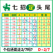 “七招定头尾”第3205期推荐版局规律,本期主攻27个位走第四步.