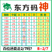 “东方码神”第3206期推荐此隔板规律,本期推荐“27”百位.