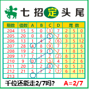 “七招定头尾”第3213期推荐版局规律,本期主攻27千位走第五步.