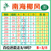 “南海椰风”第3213期推荐版局规律,本期百位38走三步.