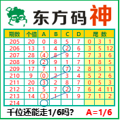 “东方码神”第3214期推荐此隔板规律,本期推荐“16千位”.