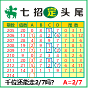“七招定头尾”第3214期推荐版局规律,本期主攻27千位走第五步.