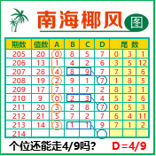 “南海椰风”第3214期推荐版局规律,本期个位49走三步.