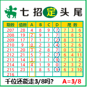 “七招定头尾”第3216期推荐版局规律,主攻38千位走第五步.