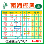 “南海椰风”第3216期推荐版局规律,本期千位05走三步.