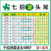 “七招定头尾”第3217期推荐版局规律,本期主攻38个位走第四步.