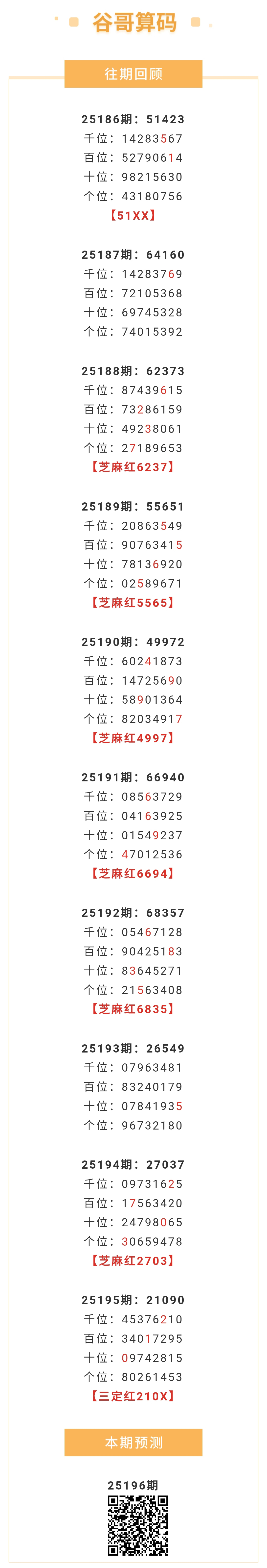 【排列五-25196期】本月圈红12次芝麻,芝麻近10红6;上期三定红210X 发表于:2025-07-25 11:33:46 浏览次数:389 上一篇: 下一篇:没有了 【笑语】 范围码15红10 点播25326期 【天时地利】 范围码15红9 点播25326期 【无敌通杀】 范围码15红9 点播25326期 七星彩杀码荣誉榜