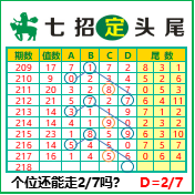 “七招定头尾”第3218期推荐版局规律,本期主攻27个位走第四步.