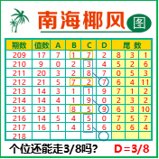 “南海椰风”第3218期推荐版局规律,本期个位38走三步.