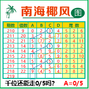 “南海椰风”第3219期推荐版局规律,本期千位05走三步.