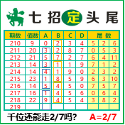 “七招定头尾”第3219期推荐版局规律,本期主攻27千位走第四步.