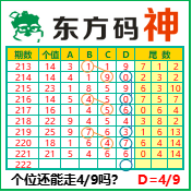 “东方码神”第3222期推荐此隔板规律,本期推荐个位站“49”.