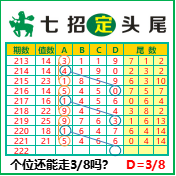 “七招定头尾”第3222期推荐版局规律,本期主攻38个位走第四步.