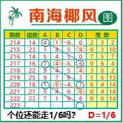 “南海椰风”第3223期推荐版局规律,本期个位16走三步.