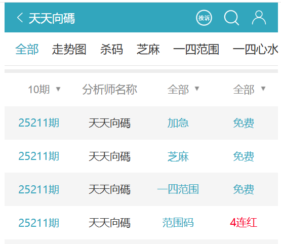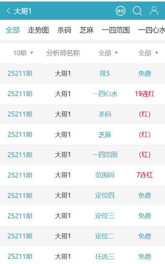 排列五25212期点播推荐大哥1,点石成金和天天向碼 3位分析师 发表于:2025-08-10 14:56:27 浏览次数:509 上一篇:25212期:五码奔腾 下一篇:25212期:【特区排列五】“大富翁”芝麻红0509,2连红;点播厅44位分析师圈红芝麻! 【春哥打奖】 范围码15红11 点播26030期 【天意人生】 范围码15红9 点播26030期 【彩女】 范围码15红9 点播26030期 七星彩杀码荣誉榜