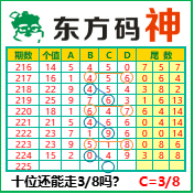 “东方码神”第3225期推荐此隔板规律,本期十位站“38”走第三步.