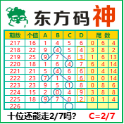 “东方码神”第3226期推荐此隔板规律,本期十位站“27”走第三步.