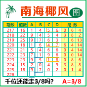 “南海椰风”第3226期推荐版局规律,本期千位38走三步.