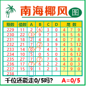 “南海椰风”第3238期推荐版局规律,本期千位05走三步.