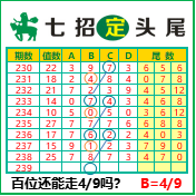 “七招定头尾”第3239期推荐版局规律,本期主攻49百位走第五步.