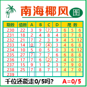 “南海椰风”第3239期推荐版局规律,本期千位05走三步.