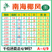 “南海椰风”第3240期推荐版局规律,本期千位49走三步.