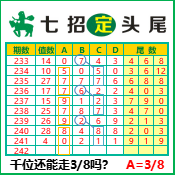 “七招定头尾”第3242期推荐版局规律,本期主攻38千位走第五步.