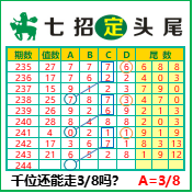 “七招定头尾”第3244期推荐版局规律,本期主攻38千位走第四步.