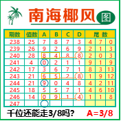 “南海椰风”第3247期推荐版局规律,本期千位38走三步.
