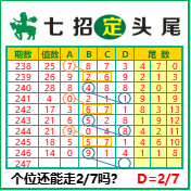 “七招定头尾”第3247期推荐版局规律,本期主攻27个位走第四步.