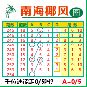 “南海椰风”第3254期推荐版局规律,本期千位05走三步.