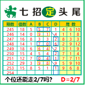 “七招定头尾”第3254期推荐版局规律,本期主攻27个位走第五步.