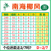 “南海椰风”第3258期推荐版局规律,本期个位27走三步.