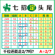 “七招定头尾”第3258期推荐版局规律,本期主攻27千位走第五步.