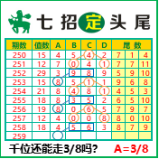 “七招定头尾”第3259期推荐版局规律,本期主攻38千位走第四步.