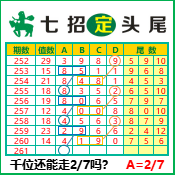 “七招定头尾”第3261期推荐版局规律,本期主攻27千位走第五步.