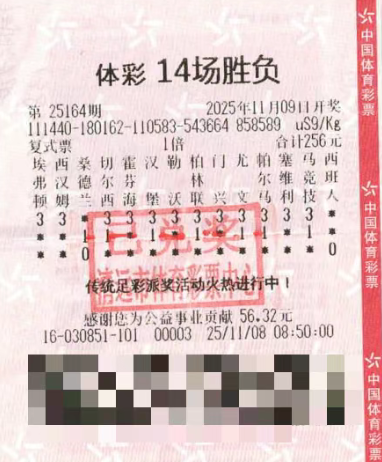 11月9日,中国体育彩票14场胜负游戏第25164期开奖结果揭晓,清远市清城区洲心街道新城建达大厦19号铺4416030851体彩实体店传来喜讯:一位购彩者凭借复式投注策略,成功斩获任选14场1注一等奖和7注二等奖,总奖金突破104万元。