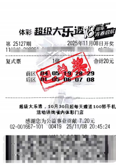 本期,王先生购买了一张复式票,他表示:“我一般都在这家体彩门店买,这次差点没赶上,直到停售前我才打了票。店员还推荐了‘金秋收获季 体彩送手机’的活动,原本打算买18元的,最后决定买20元。”开奖那晚,王先生第一时间告诉了弟弟。弟弟劝他冷静:“千万别激动,保持平常心,先好好休息。”王先生的中奖计划是:“幸运是暂时的,但希望是永恒的。未来,我要好好养身体,迎接每一天。”