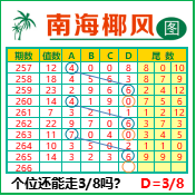 “南海椰风”第3266期推荐版局规律,本期个位38走三步.