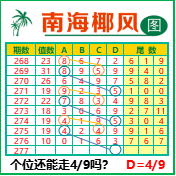 “南海椰风”第3277期推荐版局规律,本期个位49走三步.