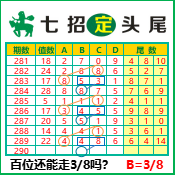 “七招定头尾”第3290期推荐版局规律,本期主攻38百位走第四步.