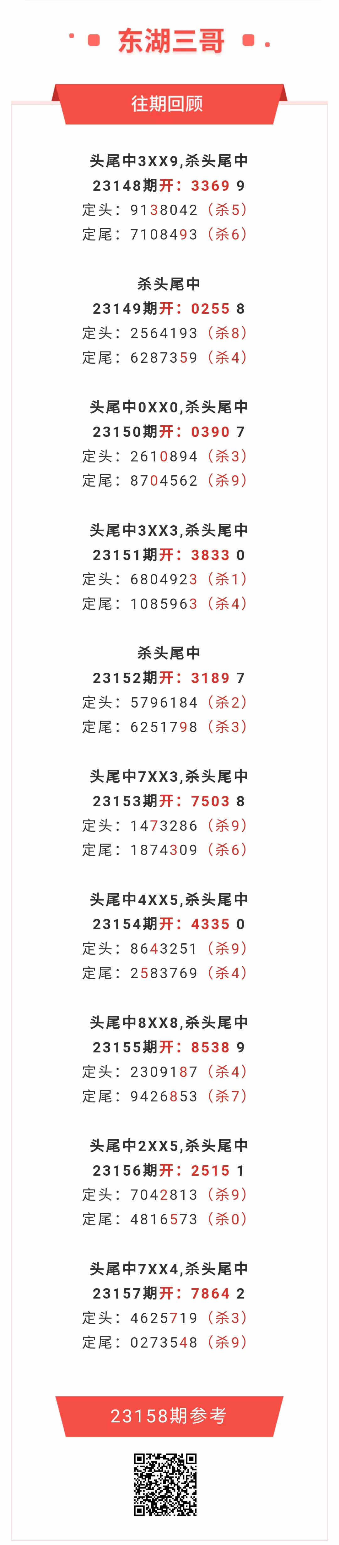 【排列五-158期】本月圈中12次头尾,头尾近10中8;上期头尾中7XX4,杀头尾中 发表于:2023-06-17 11:23:16 浏览次数:852 上一篇: 下一篇:没有了 【春哥打奖】 范围码15红10 点播26031期 【志存高远1】 范围码15红9 点播26031期 【彩女】 范围码15红9 点播26031期 七星彩杀码荣誉榜