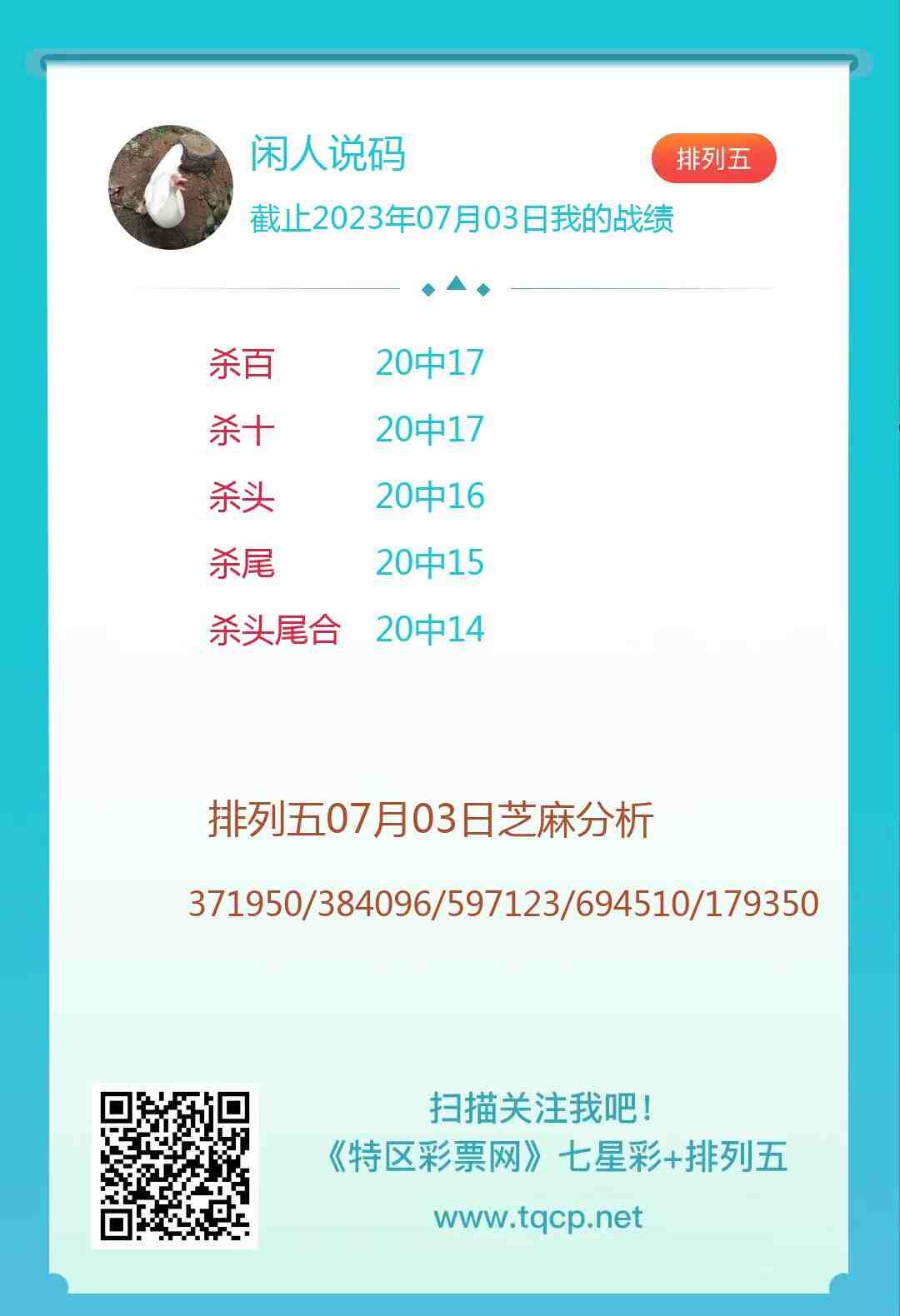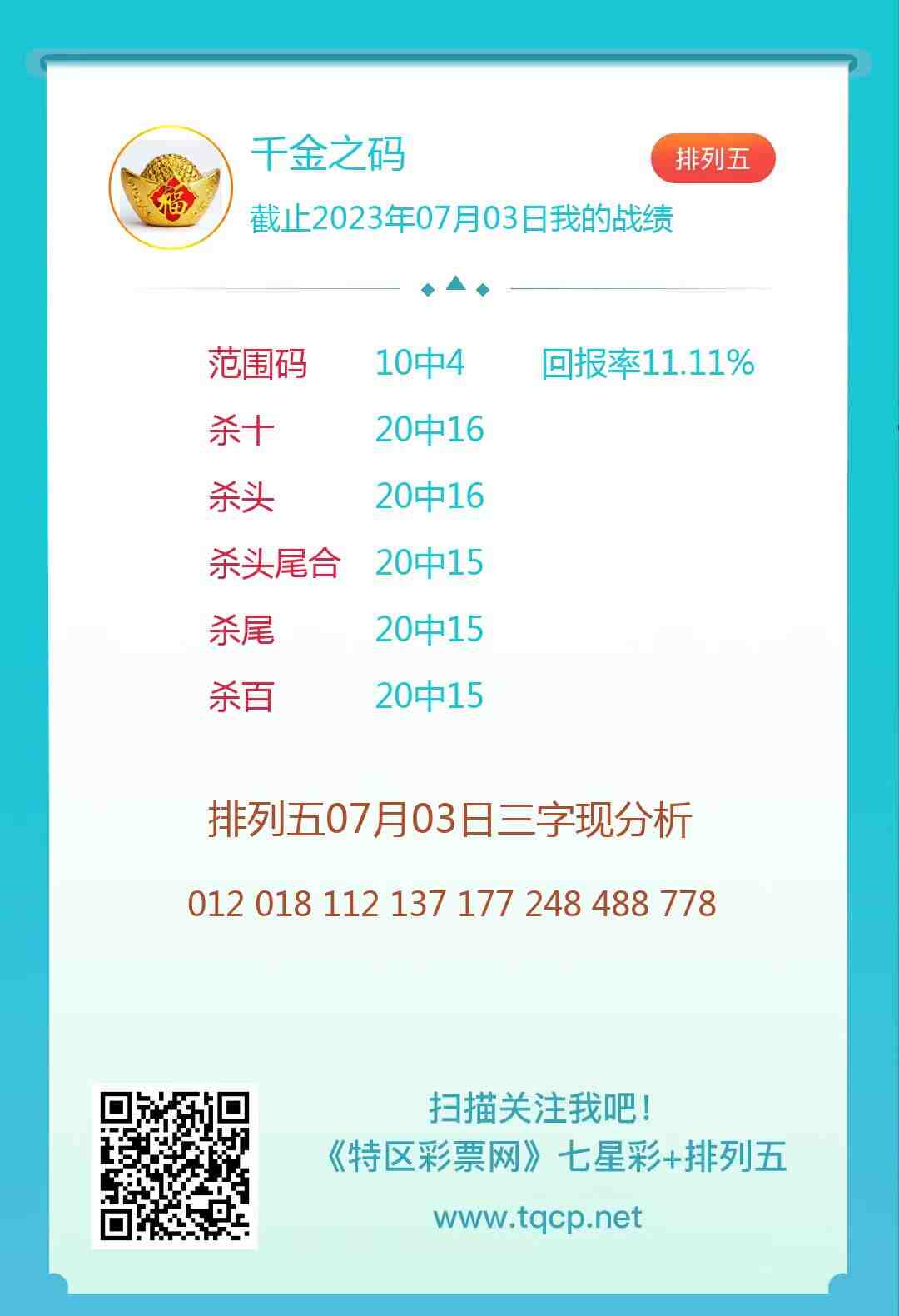 排列五23174期点播推荐八方呼应、千金之码和闲人说码3位分析师 发表于:2023-07-03 11:21:25 浏览次数:1161 上一篇:七星彩2907期特区杀二头二尾统计 下一篇:没有了 【春哥打奖】 范围码14红10 更新中 【志存高远1】 范围码14红9 更新中 【彩女】 范围码14红9 更新中 七星彩杀码荣誉榜