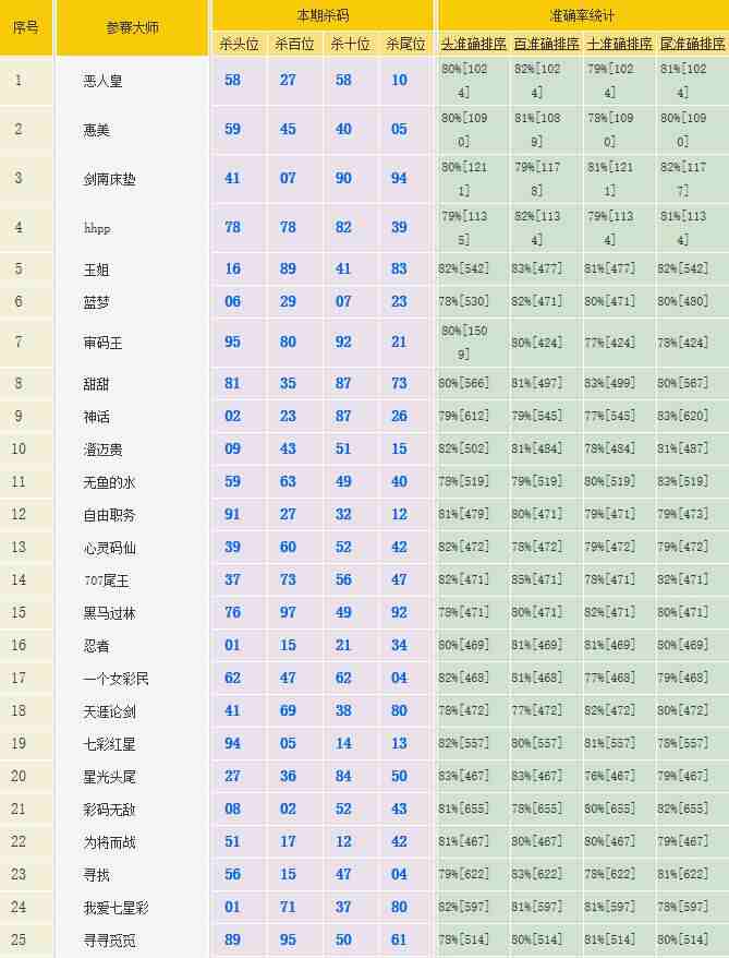 七星彩2980期特区杀二头二尾统计 发表于:2023-12-25 10:40:59 浏览次数:990 详情登录https://www.tqcp.net/kill_new_sj.html 上一篇:七星彩2980期特区杀一头一尾统计 下一篇:没有了 【春哥打奖】 范围码14红10 更新中 【志存高远1】 范围码14红9 更新中 【彩女】 范围码14红9 更新中 七星彩杀码荣誉榜