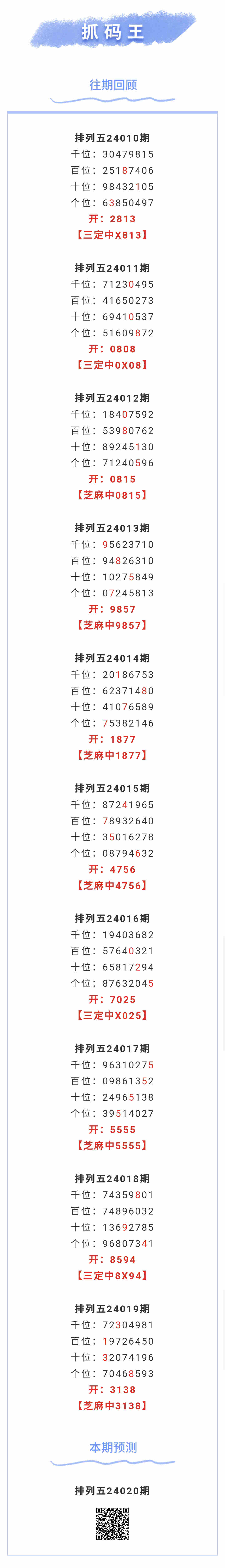 【排列五-020期】本月圈中10次芝麻,芝麻近10中6;上期芝麻中3138 发表于:2024-01-20 11:58:31 浏览次数:559 上一篇: 下一篇:没有了 【春哥打奖】 范围码15红10 点播26031期 【志存高远1】 范围码15红9 点播26031期 【彩女】 范围码15红9 点播26031期 七星彩杀码荣誉榜