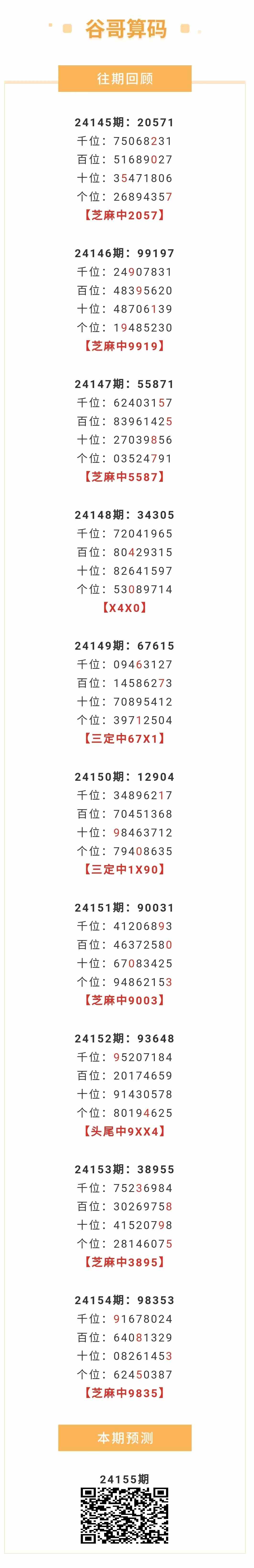【排列五-155期】本月圈中6次芝麻,芝麻近10中6;上期芝麻中9835 发表于:2024-06-13 15:54:55 浏览次数:473 上一篇: 下一篇:没有了 【志存高远1】 范围码14红10 更新中 【春哥打奖】 范围码14红9 更新中 【佛山无影脚】 范围码14红9 更新中 七星彩杀码荣誉榜