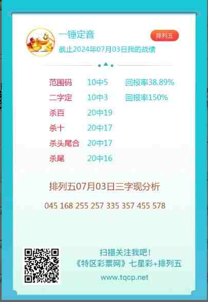 排列五24176期点播推荐日月中奖、一锤定音和福星高照 3位分析师 发表于:2024-07-04 12:00:12 浏览次数:663 上一篇:七星彩3058期特区杀三头三尾统计 下一篇:七星彩3058期特区杀一头一尾统计 【春哥打奖】 范围码15红11 点播26030期 【天意人生】 范围码15红9 点播26030期 【彩女】 范围码15红9 点播26030期 七星彩杀码荣誉榜