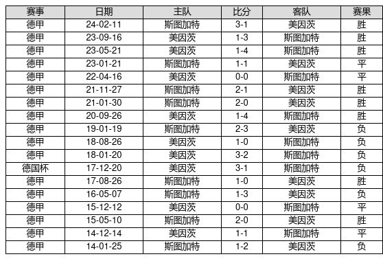 斯图加特 VS 美因茨两队近10年的交战次数为18场,斯图加特8胜4平6负,赢球概率为44.4%,平局概率为22.2%,输球概率为33.3%。