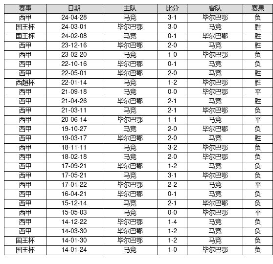毕尔巴鄂 VS 马竞两队近10年的交战次数为26场,毕尔巴鄂7胜4平15负,赢球概率为26.9%,平局概率为15.4%,输球概率为57.7%。