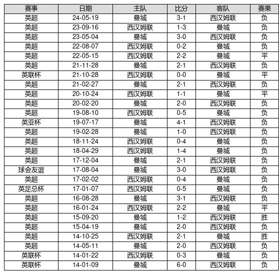西汉姆联 VS 曼城两队近10年的交战次数为27场,西汉姆联2胜4平21负,赢球概率为7.4%,平局概率为14.8%,输球概率为77.8%。